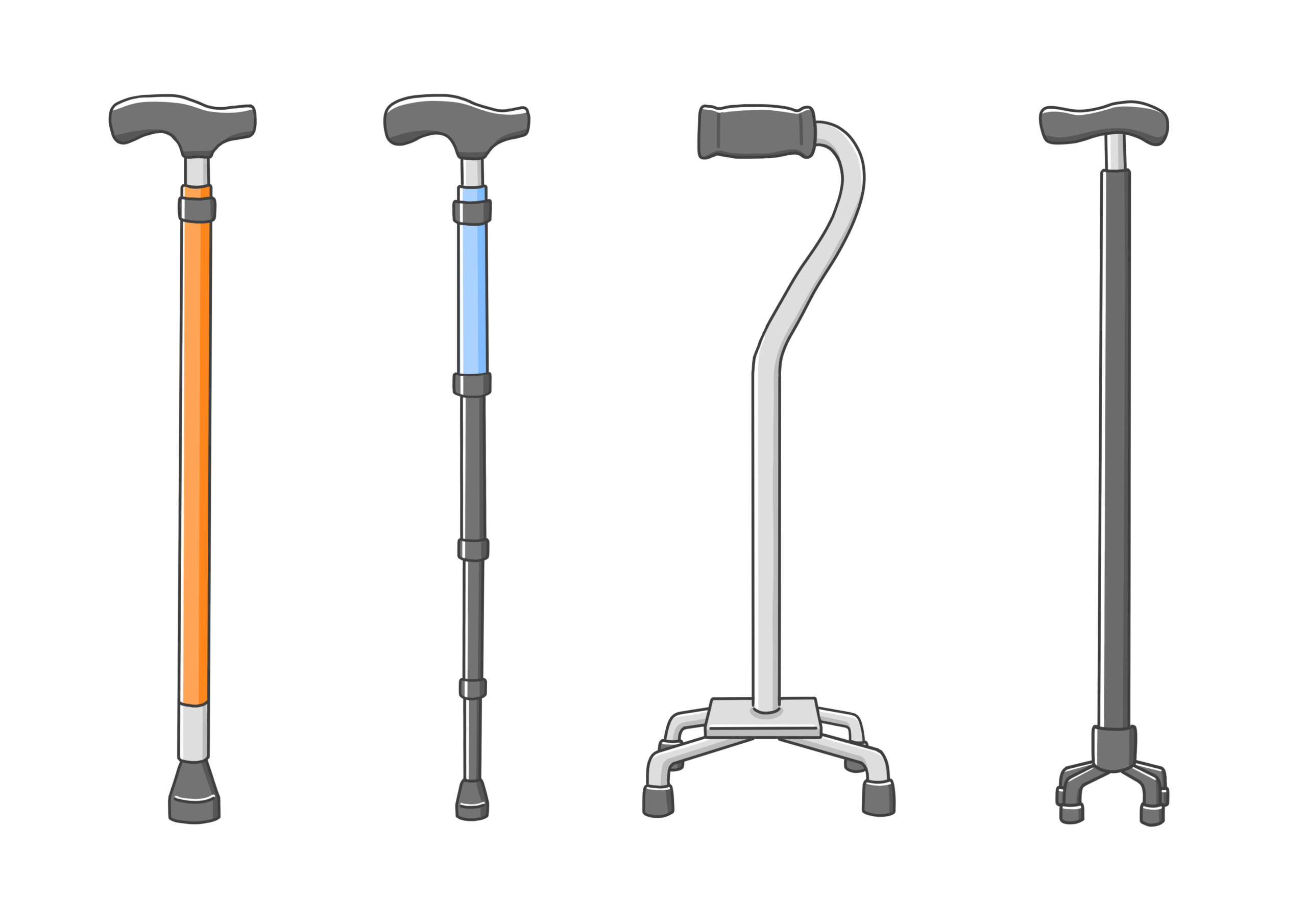 1点杖は軽くて扱いやすい反面、大きなふらつきには対応しづらい。4点杖は安定性が高い反面、動きはややゆっくりになる。この特性を理解した上で、生活環境と身体状況に合わせて選ぶことが重要です。