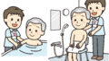 ③ 介助を受けながら入浴する人