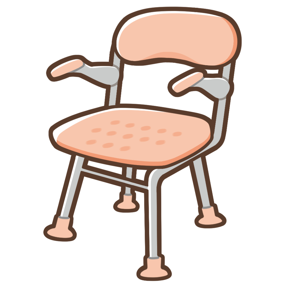 シャワーチェアとは、浴室内で体を洗う際に使用する防水仕様のいすです。滑り止め付きの脚や高さ調整機能があり、背もたれ付き・肘掛け付きなど、身体状況に合わせた種類があります。